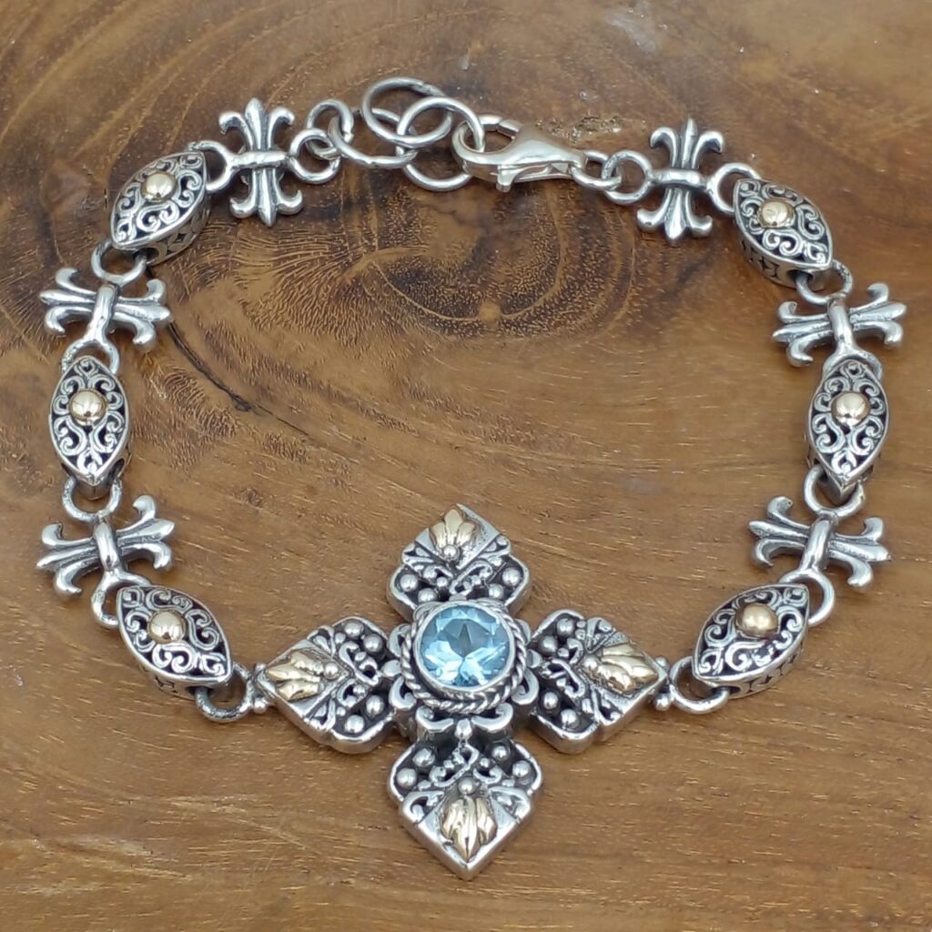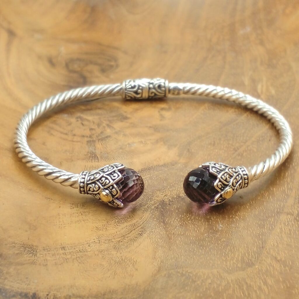 Gelang Perak Naga Bali dengan Permata dan Emas B676