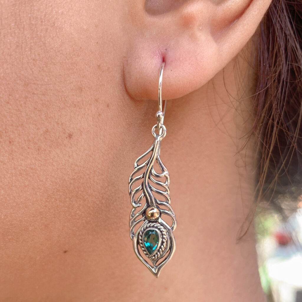 Anting Perak Bali Permata (Bulu Merak) adalah karya seni perhiasan yang memadukan keanggunan perak murni dengan kilau permata berwarna-warni, terinspirasi dari keindahan bulu merak. Motif bulu merak melambangkan keindahan dan keberanian, menjadikan anting ini simbol gaya dan kekuatan feminin. Kombinasi permata asli dan kilau emas 18 karat semakin memancarkan pesona mewah nan elegan anting ini.