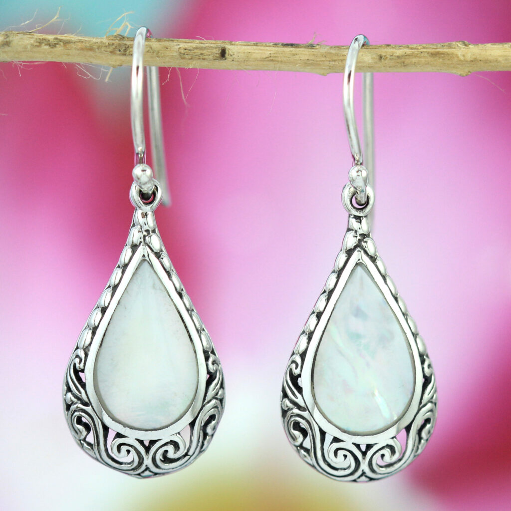 Anting Perak Bentuk Tetes Bun Armadilo dengan Kerang – Elegan & Unik
