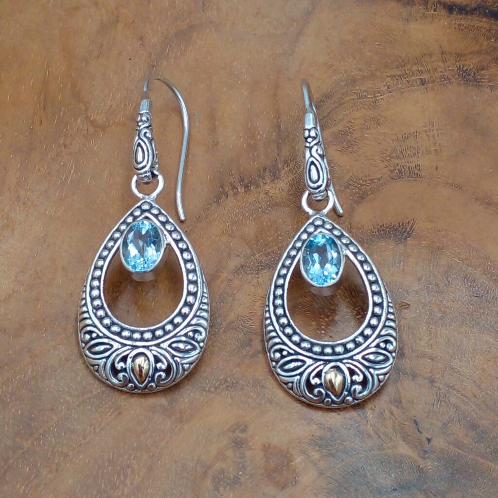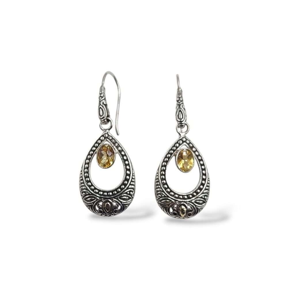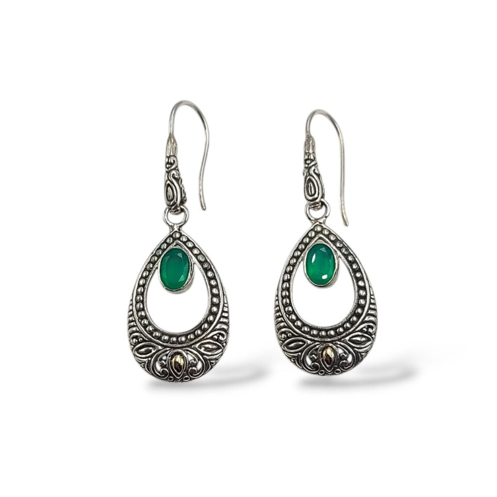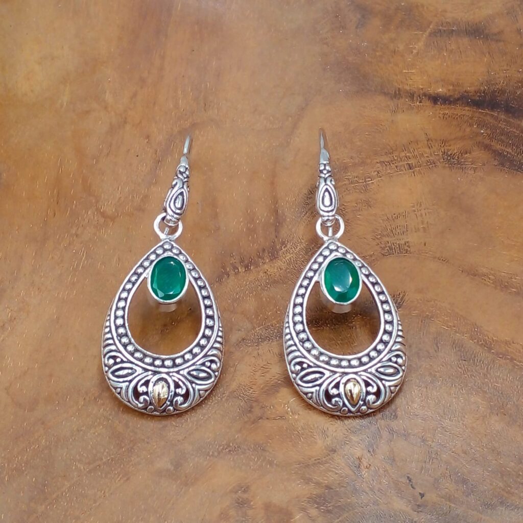 Anting Perak Bali Permata Perpaduan keindahan tradisi dan kemewahan modern, Anting Perak Bali Permata menghadirkan bentuk tetes dengan ukiran khas Bali yang artistik. Dihiasi dengan permata berkilau dan sentuhan emas 18 karat yang elegan. Terbuat dari perak murni, anting ini memancarkan aura anggun dan berkelas.