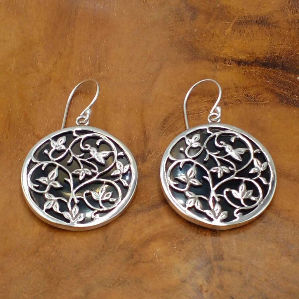 Anting Perak Bali dengan Kerang Tampilkan pesona alam dan seni Bali dalam satu aksesori dengan Anting Perak Bali dengan Kerang. Terbuat dari perak murni dengan sentuhan motif sulur yang artistik, anting ini dilengkapi kerang asli yang memperkuat kesan alami dan elegan. Ukiran sulur melambangkan kehidupan yang tumbuh dan mengalir, menjadikannya simbol keindahan dan harmoni.