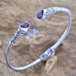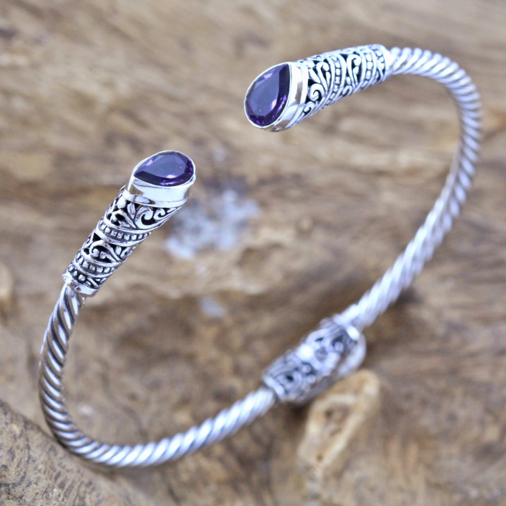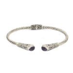 Spesifikasi Produk:Metal: Perak 92.5%Permata: Amethyst/ Citrine (Ps, 5×7 mm)Panjang: 190 mm (inner circumference 7”)Lebar: 6 mmDiameter: 60 mmBerat: 12.2 gr