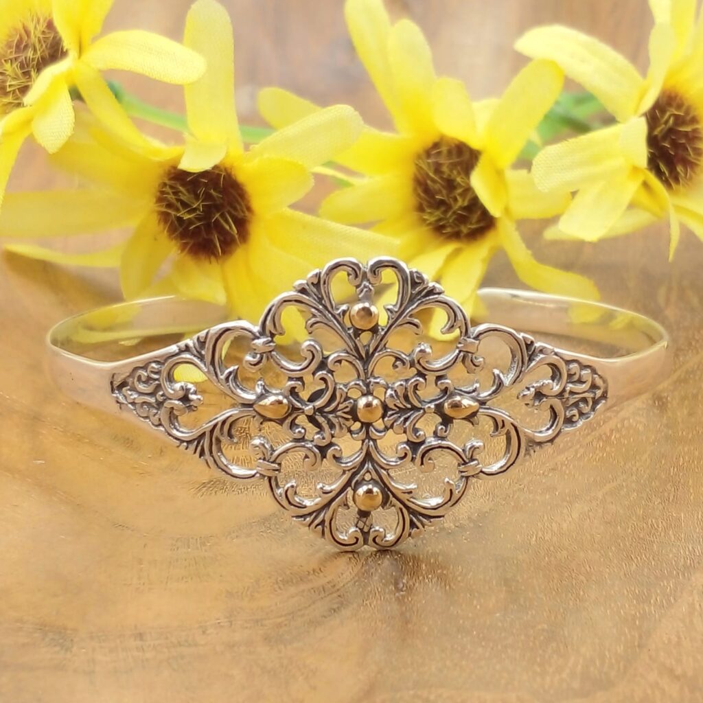 Gelang Perak Cuff Bali dengan Emas – Elegansi Eksotis dari Pulau Dewata