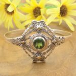 Tampilkan keindahan yang memikat dengan Gelang Perak Cuff Permata. Aksesori eksklusif dengan desain cuff yang kokoh dipadukan dengan ukiran bun khas Bali dan aksen pita, memberikan kesan modern dan feminin. Sentuhan permata dan emas 18 karat menambahkan nuansa elegan yang menawan. Cocok untuk dikenakan pada acara spesial maupun sebagai pelengkap gaya sehari-hari, gelang ini mencerminkan selera tinggi dan kepribadian yang kuat.