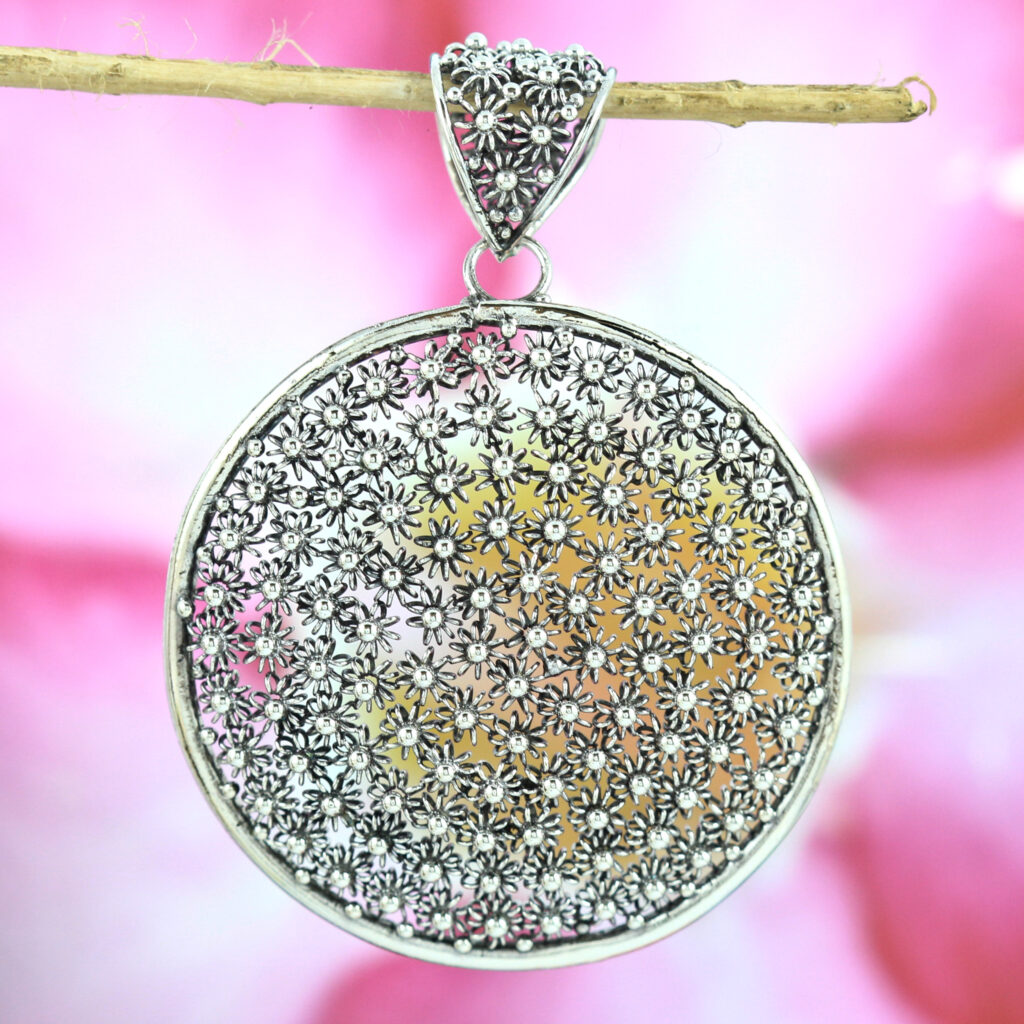 Persembahkan keanggunan warisan budaya Bali melalui Liontin Perak Bali Bulat. Liontin ini menampilkan bentuk bulat klasik yang dipadukan dengan motif Bun Paye, yaitu pola ukiran khas Bali yang terinspirasi dari keindahan sulur tanaman pare (paye). Terbuat dari perak sterling murni, liontin ini dikerjakan secara handmade oleh pengrajin lokal dengan perhatian tinggi terhadap detail.
