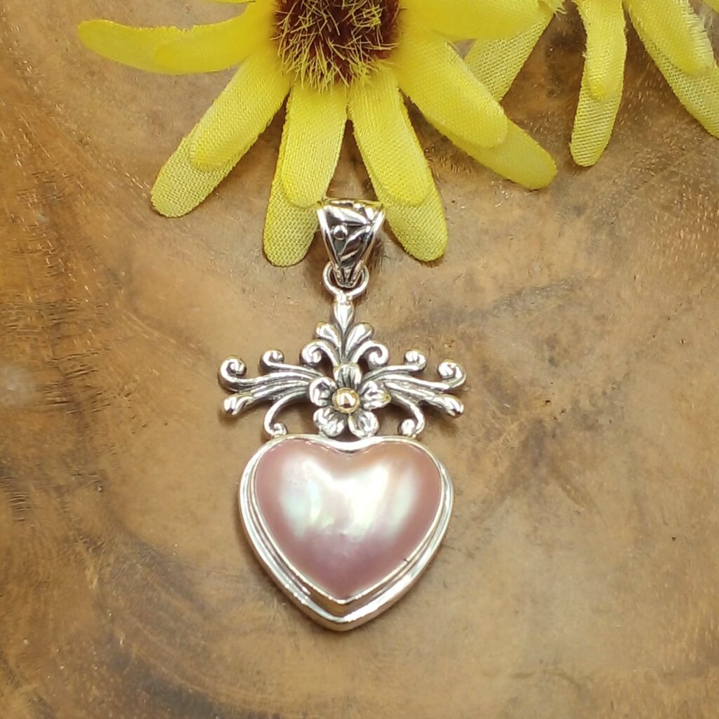 Tampilkan kesan elegan dan berkelas dengan Liontin Mutiara Mabe yang dipadukan dalam desain ukiran bunga dan daun khas Bali yang anggun. Dihiasi mutiara Mabe berbentuk hati yang berkilau lembut dan dipercantik dengan sentuhan emas, liontin ini menghadirkan harmoni antara keindahan alam dan seni tradisional. Detail ukiran perak menambahkan karakter unik, menjadikan liontin ini sempurna untuk tampilan formal maupun santai.