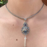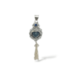 Metal: Perak 92.5%Permata: Aquamarine (heart shape 14 mm), permata biru (Rd 4mm/ Rd 5 mm)Panjang: 80 mm (include tassel rantai)Lebar: 23 mmBerat: 9.8 gr