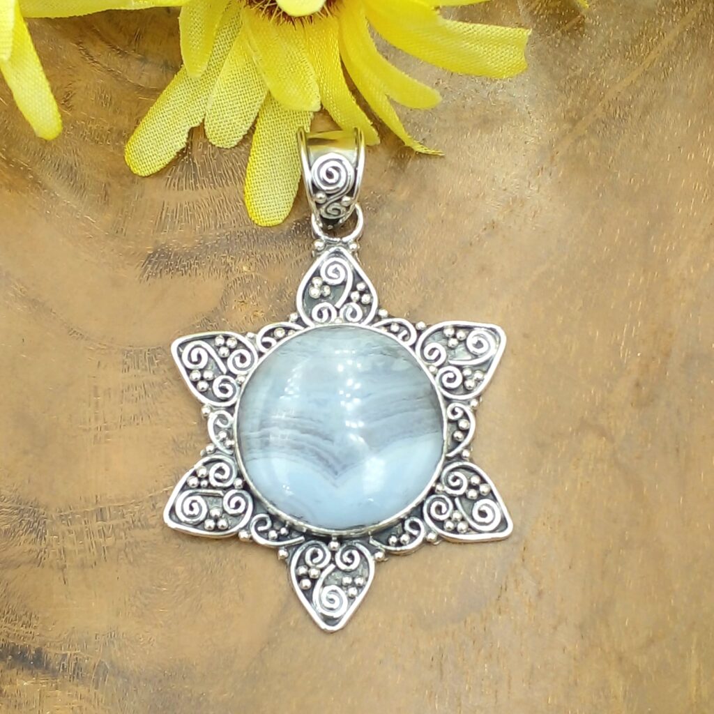 Liontin Perak Bali Permata menghadirkan keindahan seni ukir tradisional Bali yang dipadukan dengan kilau elegan dari permata pilihan. Terbuat dari perak murni 925, liontin ini menampilkan bentuk bintang segi enam yang unik dengan detail ukiran bun khas Bali yang rumit, mencerminkan kekayaan budaya serta keahlian pengrajin lokal Bali. Titik fokus liontin adalah permata yang memikat, menambah sentuhan mewah dan berkelas pada desainnya.