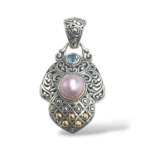Spesifikasi Produk:Metal: Perak 92.5%Permata: Mabe RD 10-11 mm & Amethyst, Blue Topaz, Citrine (Rd, 5 mm)Emas: 18KPanjang: 53 mmLebar: 29 mmBerat: 13.1 gr