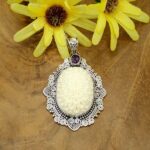 Spesifikasi Produk:Metal: Perak 92.5%Permata: Tulang Ov (19x27mm) & Amethyst/ Garnet (Ov, 5×7 mm)Panjang: 58 mmLebar: 33 mmBerat: 12.5 gr